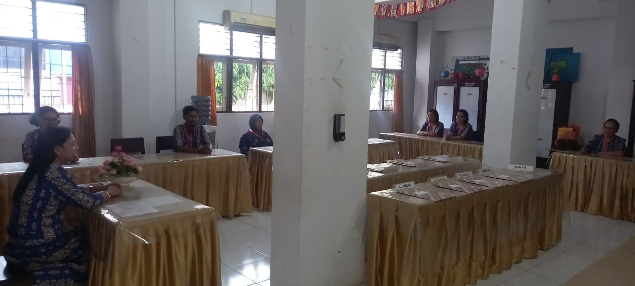 Kepala SMA Negeri 12 Ambon, Margreet E. Pupella, M.Pd memberikan arahan kepada pengawas ujian sebelum pelaksanaan ujian dilaksanakan, Kamis (7/3)