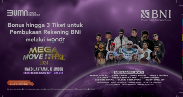 AMBON, AT-Bank Negara Indonesia (BNI) Cabang Ambon sebagai salah satu sponsor dalam Mega Move It Fest Chapter Ambon yang akan diselenggarakan pada Sabtu, 14 Desember 2024 bertempat di Mako Lantamal IX Ambon. BNI mengajak seluruh masyarakat Ambon khususnya pecinta musik untuk menyukseskan acara besar tersebut.