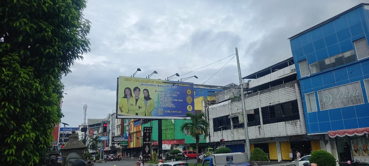 Iklan UT Ambon yang terlihat pada Senin sekira pukul 17.50 WIT setelah baliho salah satu Capres dilepas di jalan Sultan Babula Kota Ambon.