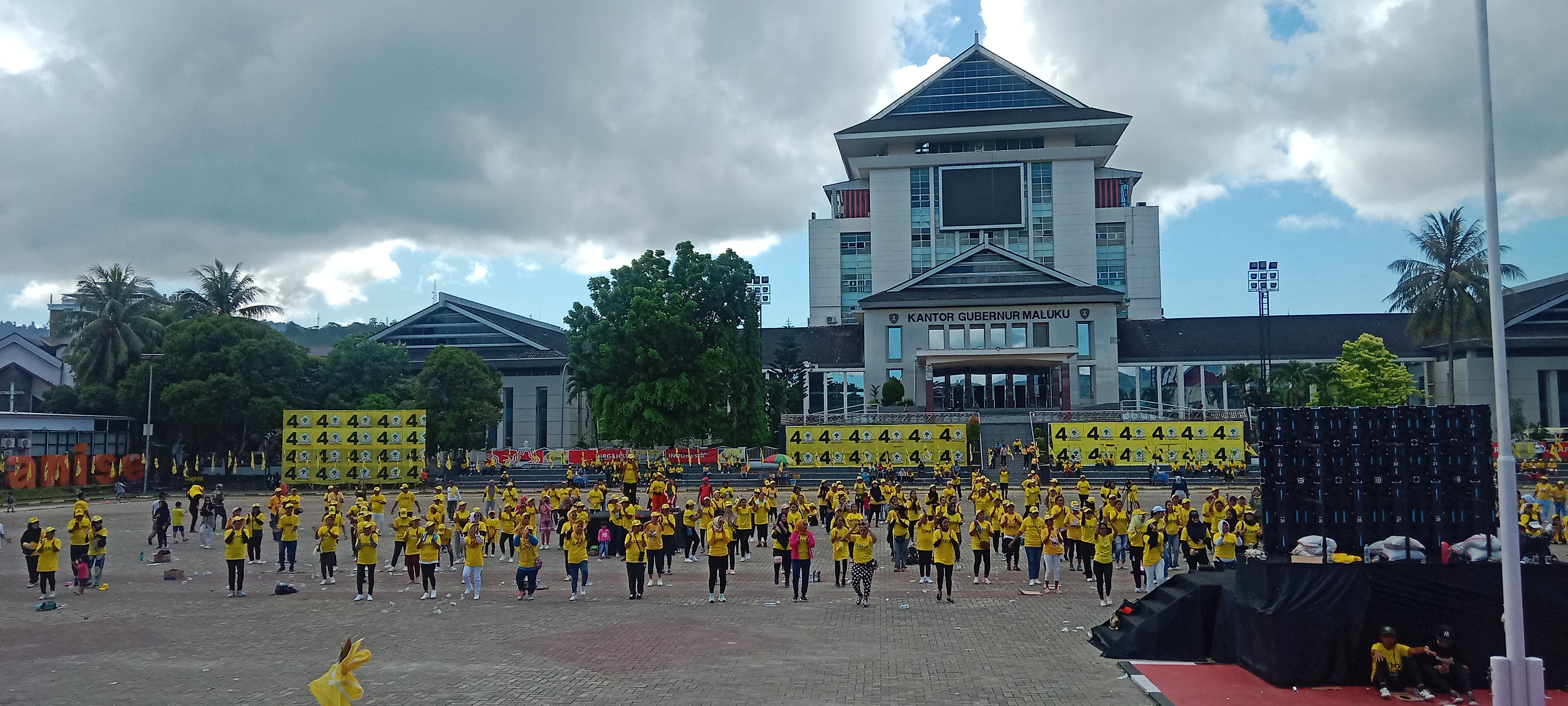AMBON, AT-Ribuan peserta senam sehat memadati Lapangan Merdeka Ambon pada Sabtu (16/11) dalam rangka perayaan ulang tahun ke-60 Partai Golkar. Acara yang diinisiasi oleh DPD Partai Golkar Maluku ini berlangsung meriah, menghadirkan suasana kebersamaan yang penuh semangat dan keceriaan.